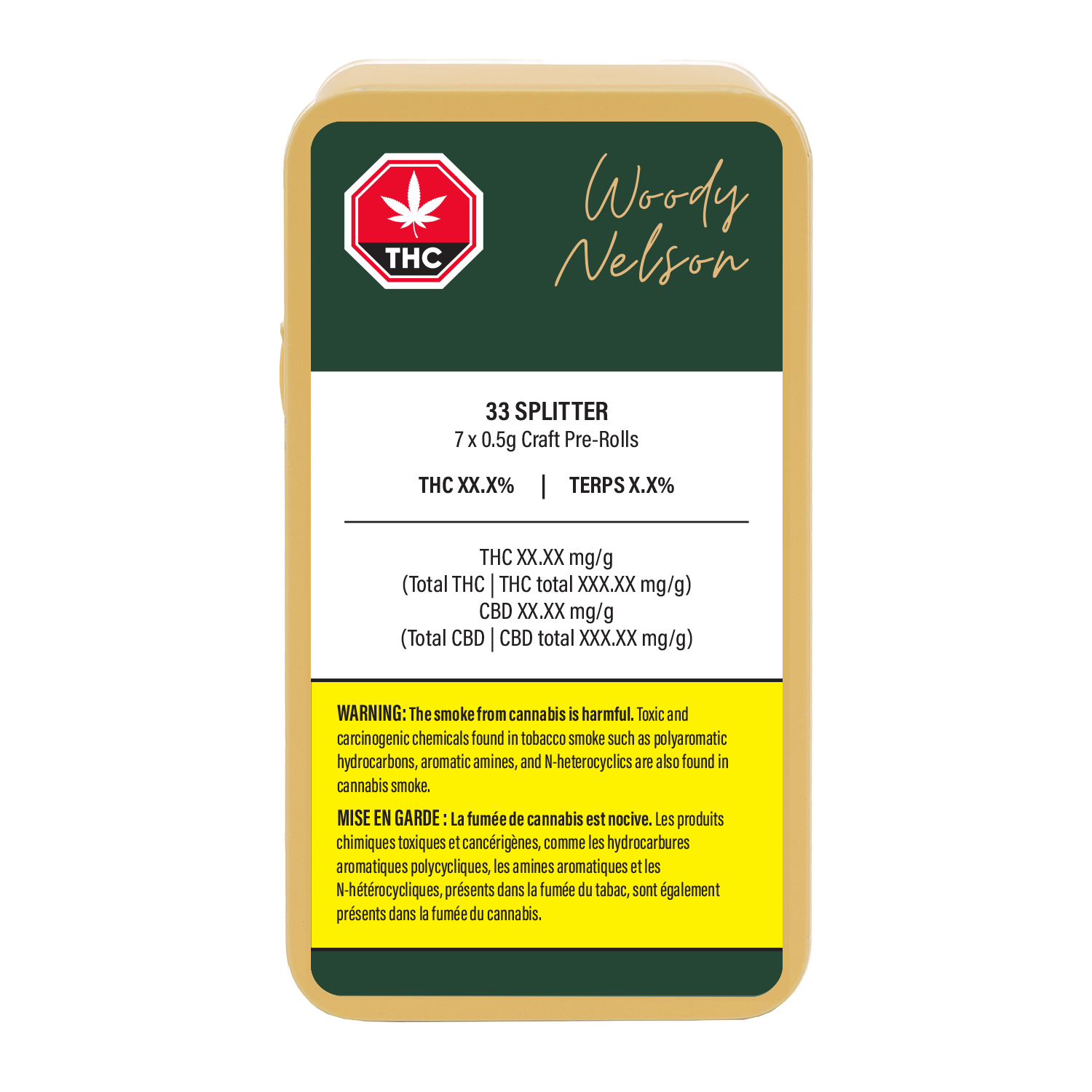 The Woody Nelson edition of the 33 Splitter genetic was bred by Uprising Seed Company and grown at an indoor vertical farm using organic living soil. This indica-dominant cultivar is rich in terpenes, including d-limonene, beta-caryophyllene, and beta-myrcene with notes of cream and gas. The plant's dense, frosty buds are hand-trimmed, cured for a minimum of three weeks, and and never irradiated. Each reusable sliding-tin comes with 7 x 0.5g Pre-Rolls and a Boveda Humidity pack.